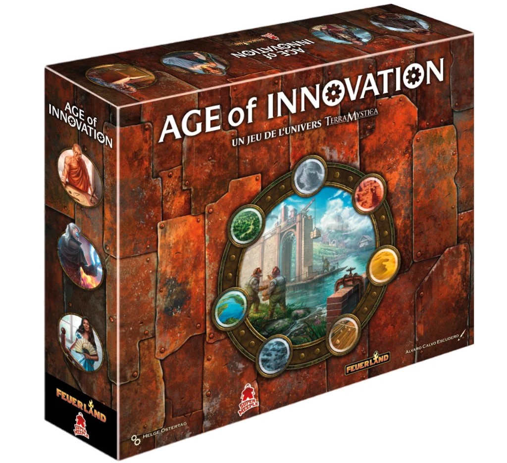 Age of Innovation, un jeu de Helge Ostretag, illustré par Álvaro Calvo Escudero & Lukas Siegmon, édité par Super Meeple et distribué en Belgique par Geronimo Games.