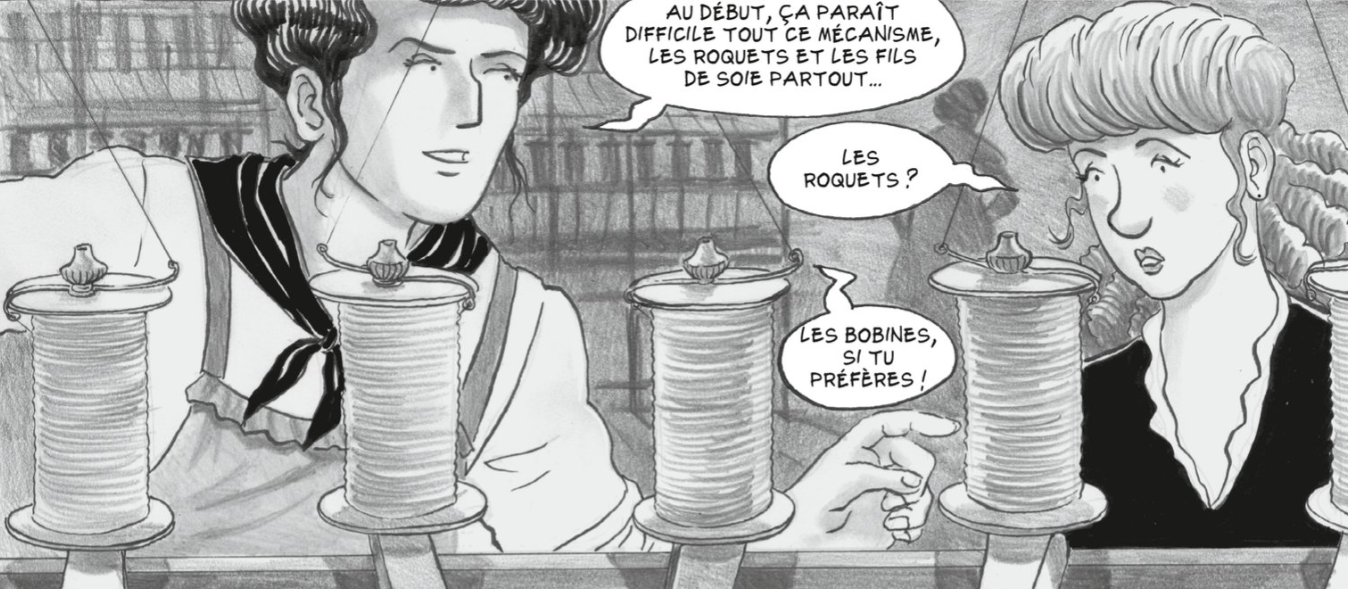 La Fabrique des Insurgées de Bruno Loth (scénario et dessin) raconte l’histoire d’un groupe de femmes qui va devenir le premier mouvement de grèves féminin en France. Les ovalistes lyonnaises (ouvrières de la soie) sont à bout. Leur travail est harassant, voire mortel, et la paye très faible. 12h de travail pour 1 franc et 40 centimes. Plusieurs milliers de femmes vont ainsi arrêter le travail et faire grève pour obtenir de meilleures conditions de travail.