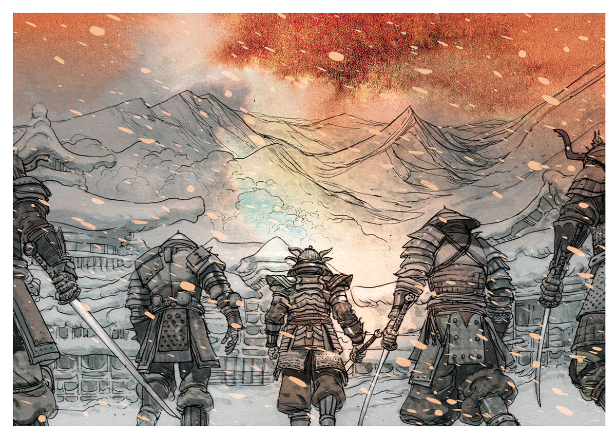 Un village Japonais dans les années 70 connaît quelques perturbations avec de la neige qui tombe en plein été. L’occasion pour les auteurs de faire monter la tension et de nous faire découvrir les habitants typiques de village : les vieillards un peu grognons, l’alcoolique du coin, les jeunes qui ne savent pas s’ils veulent rester ou partir, … Jusqu’au moment où le village se retrouve complètement isolé. Et l’horreur va commencer. Un cadavre est retrouvé lacéré parce qui semble être un katana. Puis un second. Que se passe-t-il ? Un assassin dans le village ? Ou les fantômes d’une autre époque qui ressurgissent pour se venger ? Neige de sang plonge le lecteur dans un conte tragique entre Japon traditionnel et Japon médiéval.