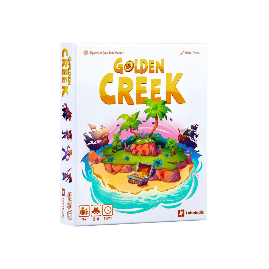 Golden Creek, un jeu de Ségolène & Jean-Paul Monnet, illustré par Michel Verdu, édité par Laboludic et distribué en Belgique par Geronimo Games.