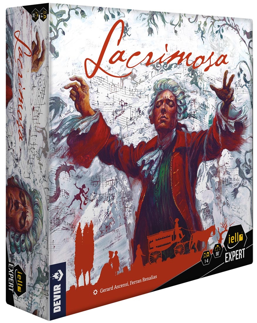 Lacrimosa, un jeu de Gerard Ascensi et Ferran Renalias, illustré par Enrique Corominas, Jared Blando et David Esbrí, édité par Devir pour la version originale et par Iello pour la version française.