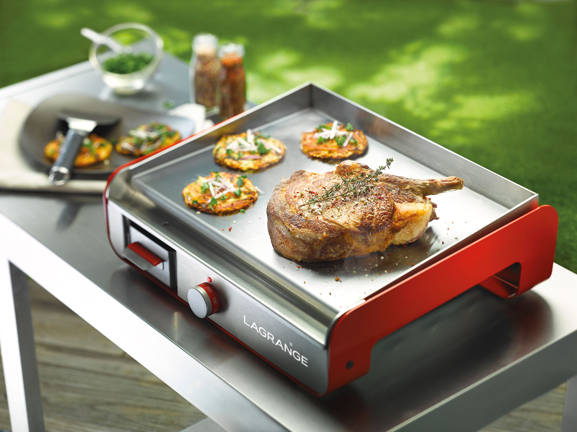 Convivialité, partage & gourmandise sont au rendez-vous autour des produits Lagrange au-devant de la scène culinaire française depuis maintenant près de 70 ans ! C’est une gamme riche et étendue dédiée à la cuisine familiale et amicale, adaptée à toute occasion que Lagrange développe et commercialise depuis de nombreuses années. Toute la famille s’y retrouve avec gaufriers & crêpières pour régaler les enfants, grills, planchas, appareils à raclette et fondue, yaourtières, blenders, mixeurs, tous les accessoires pour le petit-déjeuner (cafetière, grille-pain..) et j’en passe ! Il existe même une offre festive composée d’une machine à barbe à papa, à hot dog ou à pop-corn. A l’approche des beaux jours, renouvelez votre panoplie de cuisine et découvrons ensemble un produit que vous pourrez utiliser tant à l’intérieur qu’à l’extérieur, la plancha pro fabriquée en France.