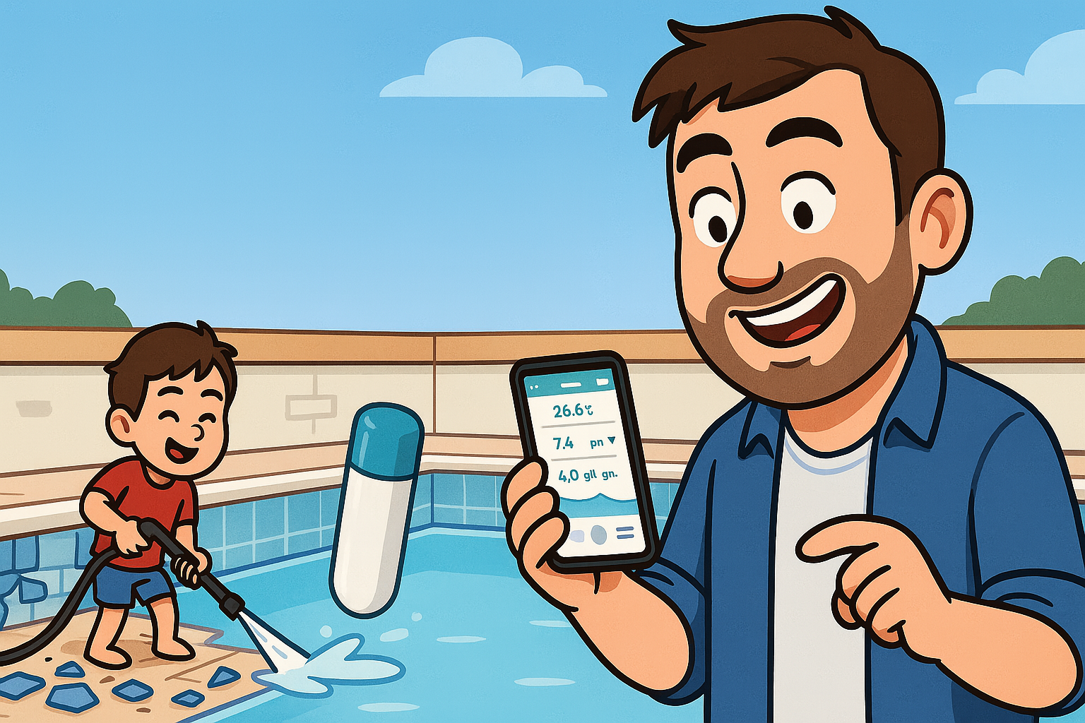 Toutes les infos sont consultables directement sur l’appli iopool, qu’on a trouvée vraiment bien fichue. En plus de l’affichage en temps réel, elle conserve un historique des mesures, envoie des alertes en cas de déséquilibre, et surtout, recommande les produits à utiliser avec la dose exacte à ajouter. On peut même les commander directement via l’app, pour une livraison express à la maison. C’est clair, efficace, et ça nous évite de jouer aux apprentis chimistes.